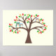Un joli trio de chouettes s'installe dans un arbre coloré.