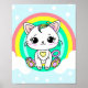Poster Rainbow kitty. Mignonne chat assis sur un arc-en-ciel. Parfait pour l'amoureux des chats / propriétaire.