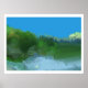Un joli tableau abstrait de montagnes vertes, une rivière et le ciel bleu