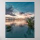 Poster ciel bleu avec nuages rouges et noirs réfléchis su