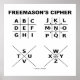 Pas besoin d'être un cryptographe pour profiter de cette affiche avec le chiffrier de Freemason, aussi connu comme le chiffrier pignon, le chiffreur maçonnique, ou le chiffreur rosicrucien. Faites que d'autres fassent une double prise sur ce chiffre de substitution simple géométrique qui échange des lettres pour des symboles qui sont des fragments d'une grille. Codeurs et tous ceux qui aiment la cryptanalyse apprécieront!