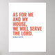 Josué 24:15 (Version Standard révisée Édition Catholique) 15 Et si vous ne voulez pas servir le Seigneur, choisissez ce jour qui vous servira, que les dieux que vos pères ont servis dans la région au-delà de la rivière, ou les dieux des Amoréens dans le pays où vous habitez; mais pour moi et ma maison, nous servirons le Seigneur."