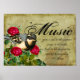 Célébrez la musique avec ce joli poster représentant une Grive Variée (un oiseau-chanteur jardin préféré de la côte Pacifique), des Petites fleurs de rose rouge, un arrière - plan vintage de partitions et un violon, et une belle citation du philosophe grec Platon : "La musique donne une âme à l'univers, des ailes à l'esprit, fuit à l'imagination et la vie à tout." Cette affiche de motivation est disponible en plusieurs tailles, pour s'asseoir au-dessus de votre piano ou ajouter de l'inspiration à une salle de classe. Un cadeau bien pensé pour le professeur de musique ! Fabriqué avec des éléments d'art par aadam_photography, Dorothe & Mohammed Hassan, CC0.