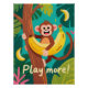 Un singe de dessin animé joyeux enlace une banane tout en grimpant à un arbre, entouré de feuilles tropicales et de la phrase enjouée « Jouez plus ! » pour une décoration de chambre d'enfant et de salle de classe vive et chaleureuse dans des couleurs chaudes et amicales et un style d'illustration texturé qui renforce l'énergie positive. Une formulation unique et descriptive et des mots-clés ciblés s'alignent sur les directives de métadonnées de Zazzle pour une meilleure découverte.