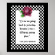 Whimsical art numérique présente un cadre en damier noir et blanc, une fleur d'aquarelle violette en haut et une citation centrale d'Alice au pays des merveilles, qui dit : "Ça ne sert à rien de revenir à hier, parce que j'étais une autre personne à l'époque."