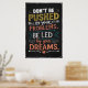 Une citation motivationnelle écrite qui dit, NE SOYEZ PAS POUSSÉ PAR VOS PROBLÈMES.SOYEZ DIRIGÉ PAR VOS RÊVES. La citation transmet un message d'autodétermination et d'indépendance.