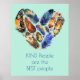 Une affiche avec un message inspirant positif. Les gens gentils sont les meilleurs. Une aquarelle de plumes en forme de coeur. Les couleurs sont jaune, orange, bleu, vert et marron. Certains ont des rayures, des points, des motifs tribaux et d'autres arrangements décoratifs créatifs uniques. Placez-vous sur un arrière - plan vert menthe.