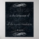 Citation de Rumi : Le silence est la langue de Dieu, tout le reste est une mauvaise traduction. Écrit sur une texture de pierre marbrée noire. Le blanc tourbillon fleurit en haut et en bas de la citation. style chic et élégant.