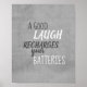 affiche citant un bon rire sur la conception de typographie murale en gris patiné.