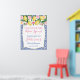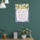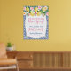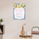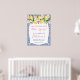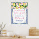Aquarelle citrons et roses roses et pivoines sur fond de motif de carrelage bleu cobalt et blanc pour ce panneau de bienvenue élégant pour un mariage ou une baby shower.