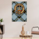 Clan Bell écusson badge entouré d'une sangle et boucle sur l'arrière - plan tartan. Texte personnalisé.