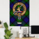Clan Gunn badge crête entouré d'une sangle et boucle sur l'arrière - plan tartan. Texte personnalisé.