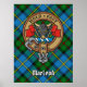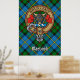 Clan MacLeod badge de crête entouré d'une courroie et boucle sur le tartan de chasse vert. Texte personnalisé.
