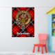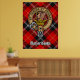 Clan Marjoribanks crête badge entouré d'une sangle et boucle sur l'arrière - plan tartan. Texte personnalisé.