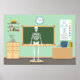 Un squelette devant une classe de sciences à l'école. Ce design semble vraiment efficace sur ces Poster