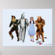 This enchanting poster features a timeless illustration of the beloved main characters from "The Wizard of Oz," set against a soft, light blue background. Dorothy stands prominently in her iconic blue gingham dress and ruby slippers, flanked by the Scarecrow, the Tin Man, and the Cowardly Lion, all arm-in-arm and ready for adventure. The characters are depicted in their classic vibrant appearances from the beloved film. This delightful poster is perfect for decorating any space, celebrating the enduring magic and friendship of this classic story.