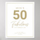 Simple signe de fête d'anniversaire blanc & or "50 and Fabulous" avec une typographie classe et élégante. Customisez-le facilement avec l'âge, le nom, la date et le lieu de la fête.