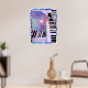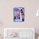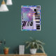 Affiche avec mon œuvre d'art numérique représentant des claviers et des rayures de couleurs pastel.