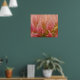 Cette affiche artistique offre une vue impressionniste abstraite sur le centre d'une fleur de trèfle rose.