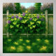 Oeuvre de feuilles et de fleurs poussant sur une clôture de piquetage. Cette oeuvre d'art vibrante capture la beauté sereine d'une scène de jardin luxuriante. Un buisson d'hydrangée florissant, éclatant de grappes de fleurs violettes délicates et de feuilles verts vibrants, se répand au-dessus d'une clôture de piquetage rustique. La lumière du soleil appliquée sur le feuillage et le premier plan herbeux crée une atmosphère chaleureuse et accueillante. Dans l'arrière - plan, les teintes douces des arbres fleuris apportent profondeur et une touche de tranquillité rêvée à ce paysage pittoresque. Cette pièce apporte une touche de fraîcheur printanière et de charme paisible à toute chambre.