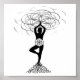 Une femme dans l'arbre pose avec la fleur de vie symbole dans son sein.