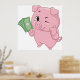 Un cochon rose riche tenant un peu d'argent. Ce design semble vraiment efficace sur ces Poster
