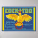 Étiquette de caisses de fruits de Tracy en Californie avec un grand cockatoo sur une bague rouge. Parfait pour les amateurs d'oiseaux !