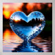 Poster Coeur bleu réfléchi dans l'eau au coucher du solei