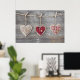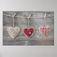Poster Coeurs sur une table en bois