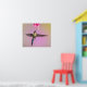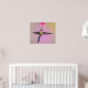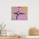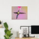 Impression montrant le magnifique colibri sylphe à queue violet exotique en vol dans une forêt nuageuse en Equateur, tendant vers une fleur fuchsia rose, avec ses ailes étirées et de belles plumes longues à queue en exposition. Belle et unique décoration de colibris pour oiseaux, nature et amoureux de les jardins. Photo prise à Tandayapa, Equateur.