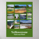 Collage de photos prises au parc national Yellowstone (y compris Old Faithful, Morning Glory Pool, Madison River, Grand Prismatic Spring, Liberty Casquette, Mammoth Hot Springs et Upper Falls of the Yellowstone).