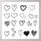 Collection de coeurs dessinés à la main isolés sur un arrière - plan blanc. dessin vintage, illustration, abstrait, flèche, art, arrière - plan, noir, dessin animé, classique, collection, créatif, mignon, décoration, décoration, décoration, design, différent, doodle, dessiné, elementvintage, rétro, illustration,