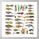 Un graphique de haute qualité montrant une variété de leurres de pêche. Ce design est parfait pour une large gamme de produits pour les amateurs de pêche et de plein air.