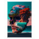 A skull head has been completely colored in abstract style to bring you into the world of creativity and surreal design, in the style of photo-réaliste landscapes, tropical landscapes, futuristic réaliste, pixelated réaliste m, light crimson and sky-blue, surréaliste dreamscapes