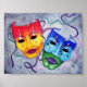 Les masques de théâtre comique et tragique, dessinés et dessinés à la main par Sandra Gale. Ce dessin original est coloré et fantaisiste et s'apparente à merveille à n'importe quel produit. Peut être offert comme cadeau à l'acteur que vous connaissez, ou comme une belle décoration colorée. Des visages heureux et triste aux couleurs coordonnées représentent le théâtre et l'action. Parfait pour tous les objets et convient à tous les âges.