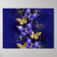 Composition des luxueux papillons saphir et bijoux en or sur arrière - plan bleu texturé.