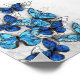 Vertical composition of réalistes, blue and white morpho butterflies on gray textured background. Morphine bleu.