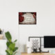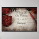 Un poster "Bienvenue à notre mariage" avec une photo sur le thème floral automnal. Avec du papier à lettres délavé et ligné et un stylo posé dessus avec de jolies fleurs rouges et des feuilles vertes placées autour des bords. Un design de mariage à personnaliser avec le nom de la mariée et du marié et leur date de mariage.