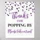 Merci pour le popping par pop-corn bar signe pour baby shower, douche nuptiale, fête d'anniversaire ou mariage dans un motif confetti violet et noir.