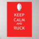 Un cadeau idéal pour les fans et les joueurs de rugby. Faite dans le style des célèbres affiches de propagande de 2ÈME GUERRE MONDIALE britannique "Keep Calm and Carry On", la couronne est remplacée par une boule de rugby et le slogan dit "Keep Calm and Ruck".