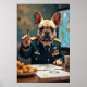 Le lieutenant Lick n’est pas juste mignon, il est en train de tirer. Vêtu d'un uniforme de l'armée vierge aux médailles brillantes, ce Bulldog français est (hre, assis) en charge d'une opération du centre de commandement. Avec un pointeur en forme d'os orienté vers une carte géante, il supervise la logistique des collations et le déploiement des jouets. Les cartes sont partout, et ses friandises aussi. Son visage peut paraître sérieux, mais ce sourire dit le contraire. Un mélange parfait de discipline, de gribouillis et de stratégie délicieuse.