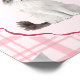 This art print features a watercolor style portrait of a rag doll cat with a pink plaid background.