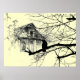 Une silhouette de l'oiseau et des branches nues. Il peut s'agir de corbeau, de corbeau ou de rook. Maison en bois de style victorien russe abandonnée. Vous pouvez modifier la couleur de l'arrière - plan si vous appuyez sur le bouton "personnaliser".