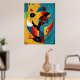 A vibrant geometric abstract of orbiting circles and sleek lines in teal, tangerine, red, and yellow. The design channels mid-century modern and Bauhaus sensibilities—clean shapes, strong color blocks, and lively motion. Perfect for contemporary interiors, creative studios, and gallery walls. Pair with minimalist furniture and warm lighting for a striking focal point.