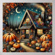 Poster Cosy Cottage Avec Citrouilles Festifs