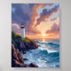 Coucher de soleil du phare côtier | Poster de peinture sur l'océan de la plage