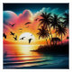 Une belle scène de coucher de soleil avec palmiers et oiseaux