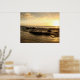 Accrochez cette affiche d'un coucher de soleil magnifique avec les vagues qui s'écrasent dans les rochers de la plage pour que chacun puisse voir.