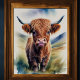 Peinture d'aquarelle mignonne d'une vache des Highlands. Le ratio d'aspect est de 5:4. Il a été conçu pour être imprimé en 5 po×4 po, 10 po x 8 po, 20 po x 16 po, 30 po x 24 po