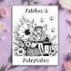 Poster sur le thème du conte fée couleur moi. Poster de coloriage pour enfants ou adultes avec une jolie fée lisant un livre dans un lot de grandes fleurs à côté d'une lanterne.